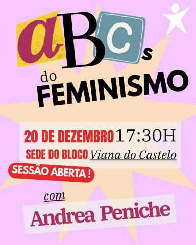 O Bloco de Esquerda apresenta o que será a primeira de muitas sessões onde vamos explorar temas básicos que fazem parte das nossas lutas. Este mês nos “ABCs”, temos os “ABCs do feminismo” com Andrea Peniche. No dia 20 de dezembro, às 17h30, na sede distrital.